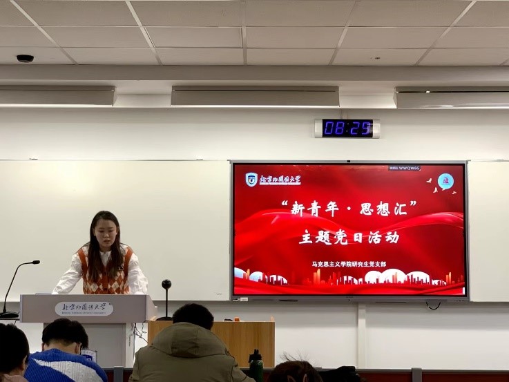2021级硕士研究生、中共预备党员韩成表示,“未来属于青年,希望寄予青年。”青年是祖国的未来、民族的希望,也是我们党的未来和希望。作为当代青年,作为北外马院一份子,就应该发扬理论联系实际的优良作风,在行动中学习,在学习中行动,体现当代青年人的责任和担当。坚定政治立场,完成好学业,做好学生工作,团结同学,把眼界放大、格局放大,都是责任和担当的实际体现。