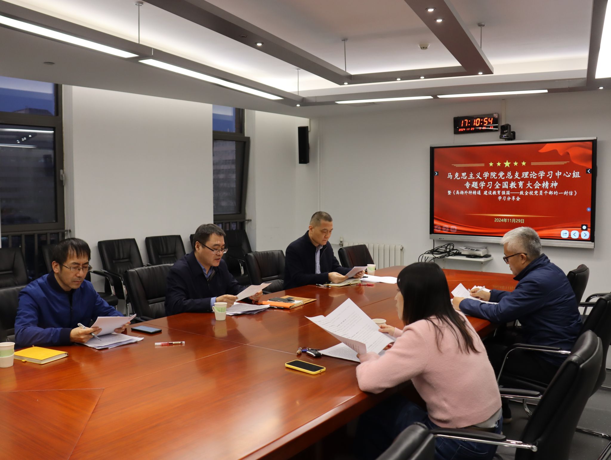 11月29日,亚洲国产精品无码久久影院党总支理论学习中心组召开学习全国教育大会精神专题会暨《高扬外特精通 建设教育强国——致全校党员干部的一封信》学习分享会。会议由党总支书记祝和军主持。