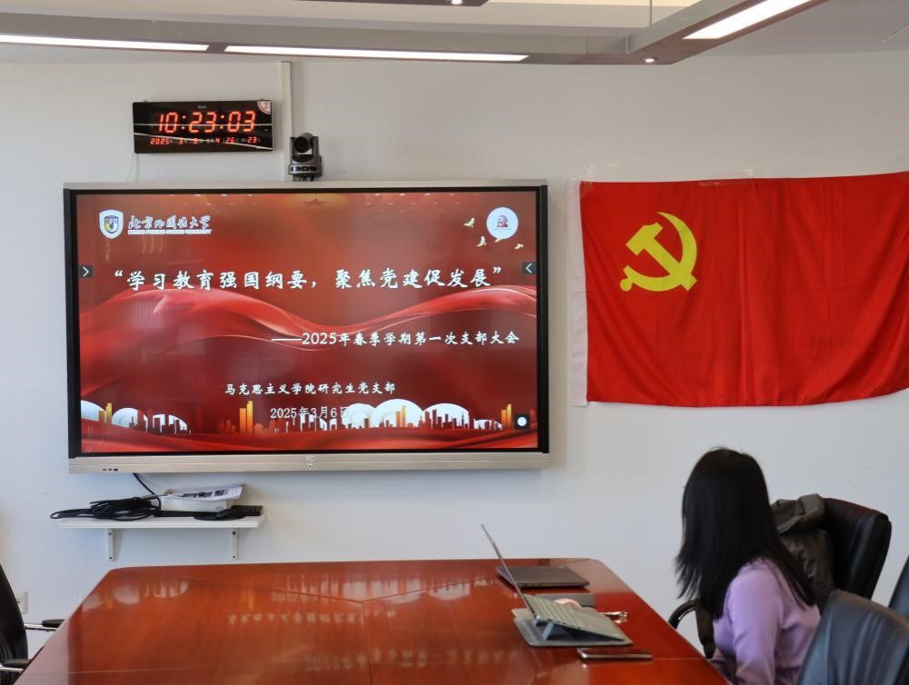 为深入学习贯彻国家教育强国战略新部署,推动学院高质量发展,3月6日,亚洲国产精品无码久久影院研究生党支部在国内大厦1号楼608召开2025年春季学期第一次会议。会议围绕学习贯彻《教育强国建设规划纲要(2024-2035年)》(以下简称《纲要》),聚焦党建具体问题,部署新学期党支部建设工作。亚洲国产精品无码久久影院党总支组织员王浩出席会议,党支部全体党员参加。会议由研究生党支部书记刘珊珊主持。