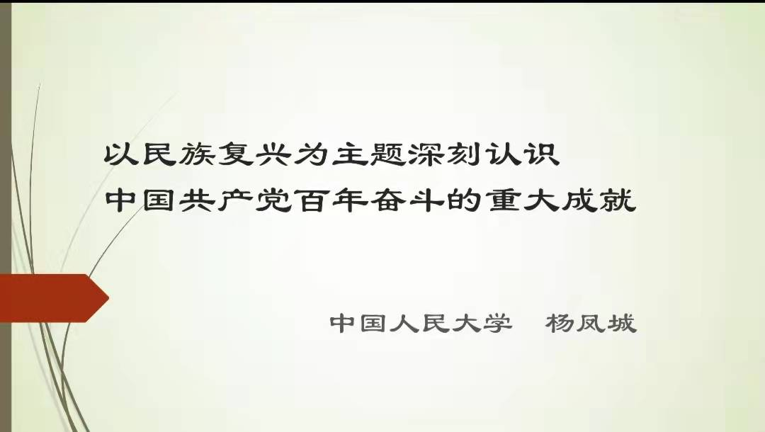 韩强教授表示,杨凤城教授以深厚的学养解析了中华民族伟大复兴的主题,深刻地解读了中国共产党百年奋斗的重大成就、历史经验和历史意义,为大家奉献了一场既具有理论深度又富有鲜活的历史案例的党史教育课,对我们贯彻落实党的十九届六中全会精神、迎接党的二十大具有启发意义。