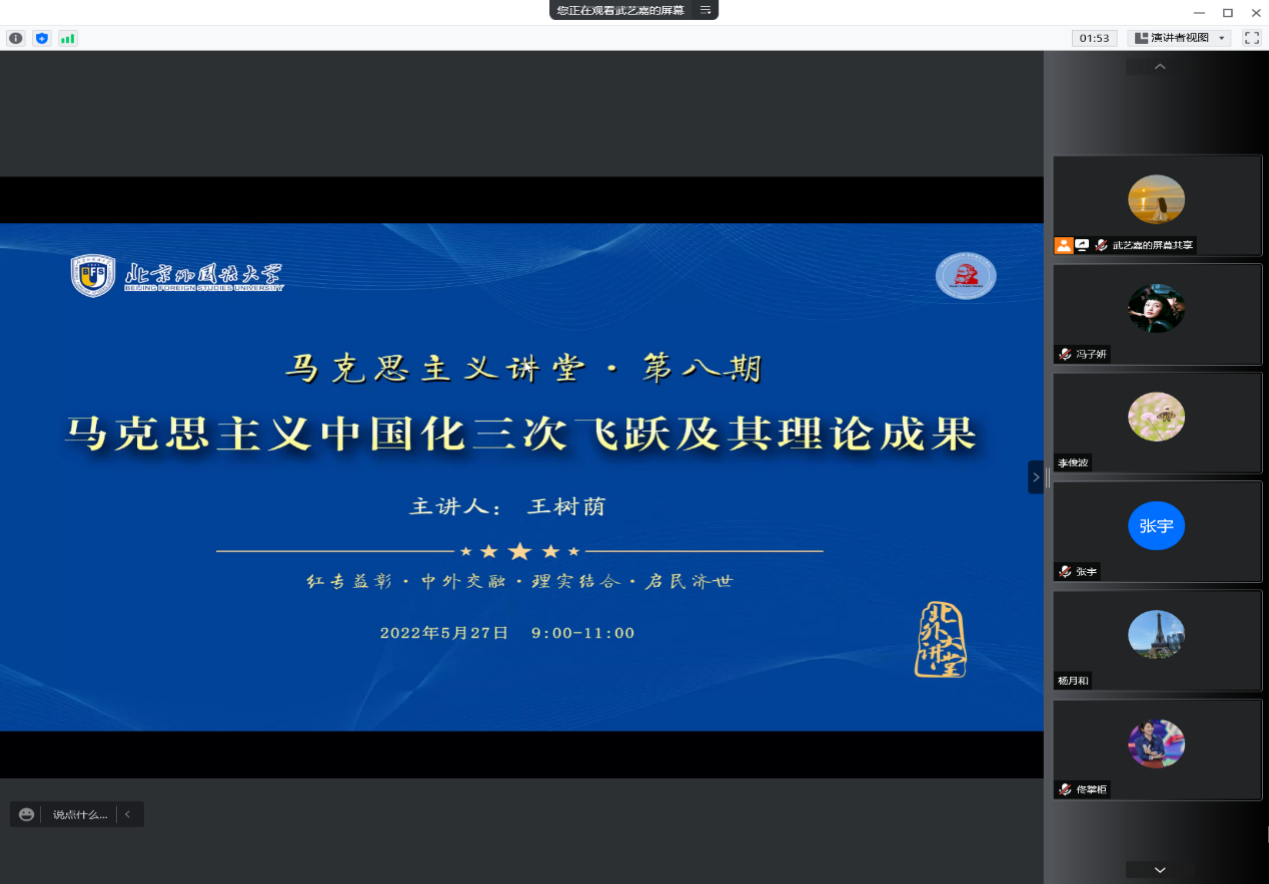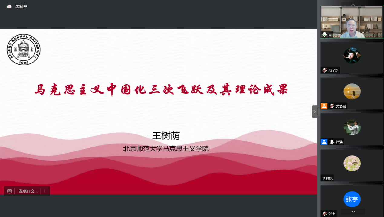 5月27日上午,北外马克思主义讲堂第八期活动在线上成功举办。北京师范大学亚洲国产精品无码久久影院二级教授、博士生导师王树荫应邀以“马克思主义中国化三次飞跃及其理论成果”为题做了专题讲座。本次讲座共有校内外师生500余人参加,活动由北京外国语大学亚洲国产精品无码久久影院院长韩强主持。