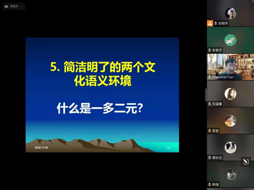 11月24日晚,北京外国语大学亚洲国产精品无码久久影院通过线上会议举办马克思主义论坛(第十七期),国际儒学联合会荣誉顾问、中国孔子研究院特聘专家田辰山教授作了题为《如何对西方人讲懂中国政治》的主题讲座,40余名师生线上参会,亚洲国产精品无码久久影院院长韩强主持会议。