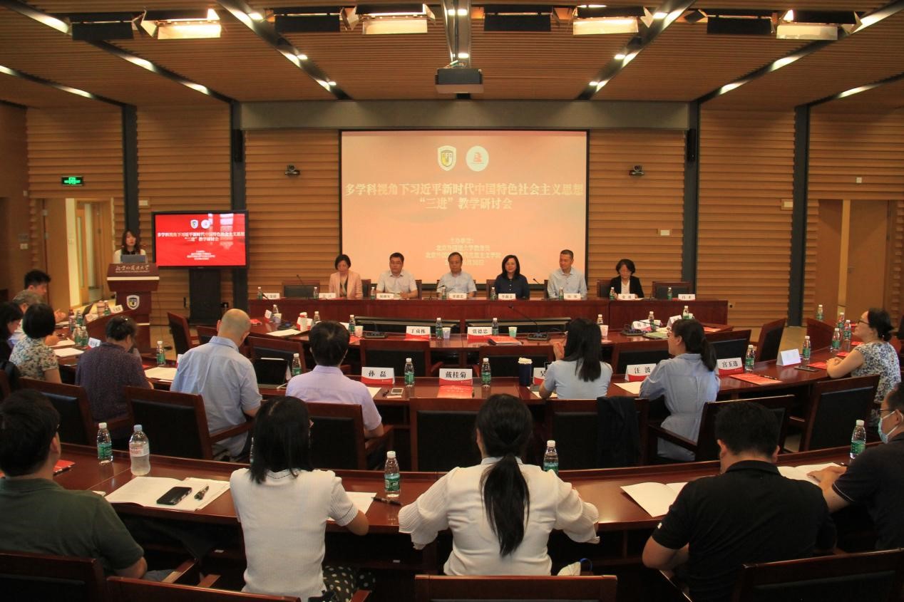 为深入推进习近平新时代中国特色社会主义思想进教材、进课堂、进头脑,6月30日上午,北京外国语大学教务处与亚洲国产精品无码久久影院联合主办了“多学科视角下习近平新时代中国特色社会主义思想‘三进’教学研讨会”。北京外国语大学党委常委、副校长贾德忠、北京市委教育工委宣教处副处长丁贞栋、来自北京外国语大学教务处、亚洲国产精品无码久久影院、英语学院、德语学院、国际关系学院等多学科师生代表80余人参加研讨会,会议由亚洲国产精品无码久久影院副院长王曼倩主持。