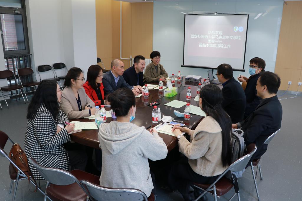 祝和军对西外马院一行来访表示热烈欢迎和衷心感谢,介绍了北外马院的发展概况,并就近年来学院一些重点工作进行了介绍。他指出,北外和西外同为涉外院校,两个学院在学科建设、师资队伍建设、思想政治理论课教学、专业人才培养方面有诸多可借鉴和交流之处,希望两个学院能够加强联系、密切沟通,做到优势互补,协同发展,共同进步。