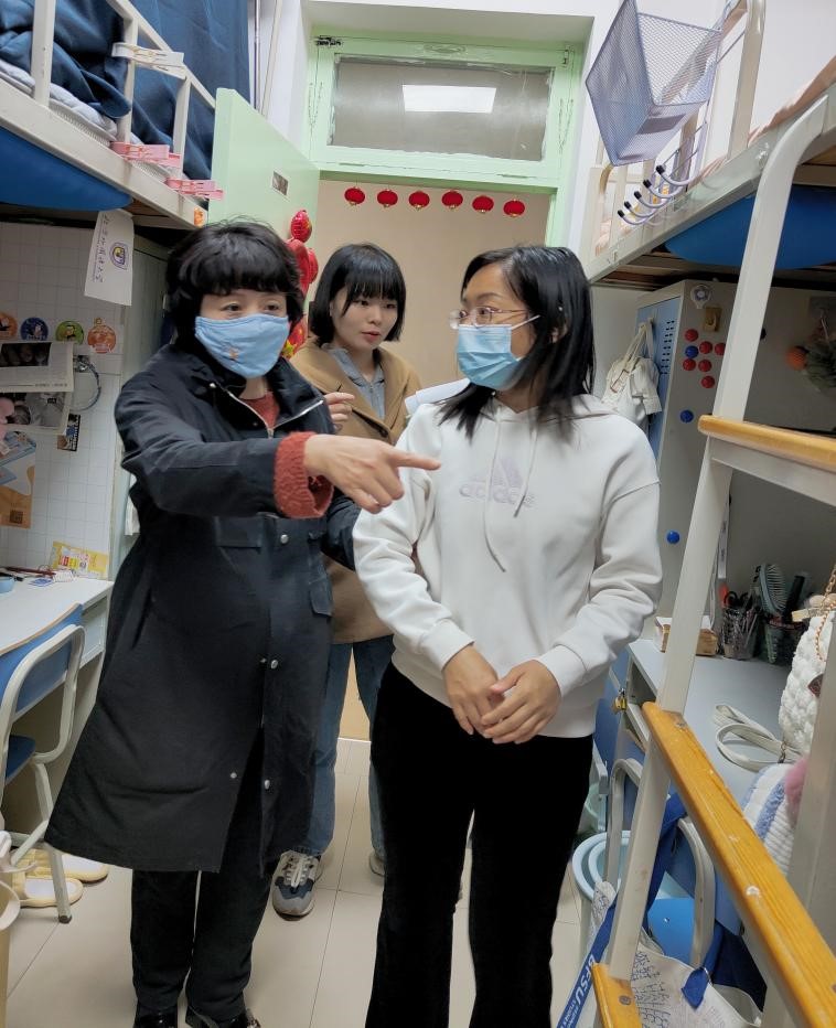 近日,为加强宿舍安全管理,排查宿舍安全隐患,营造良好的学习生活环境,亚洲国产精品无码久久影院党总支书记祝和军老师、学生辅导员刘珊珊老师、办公室孟蔓老师带队深入学生宿舍走访慰问,了解学生宿舍基础设施、环境卫生、消防安全情况,并与同学们亲切交流。