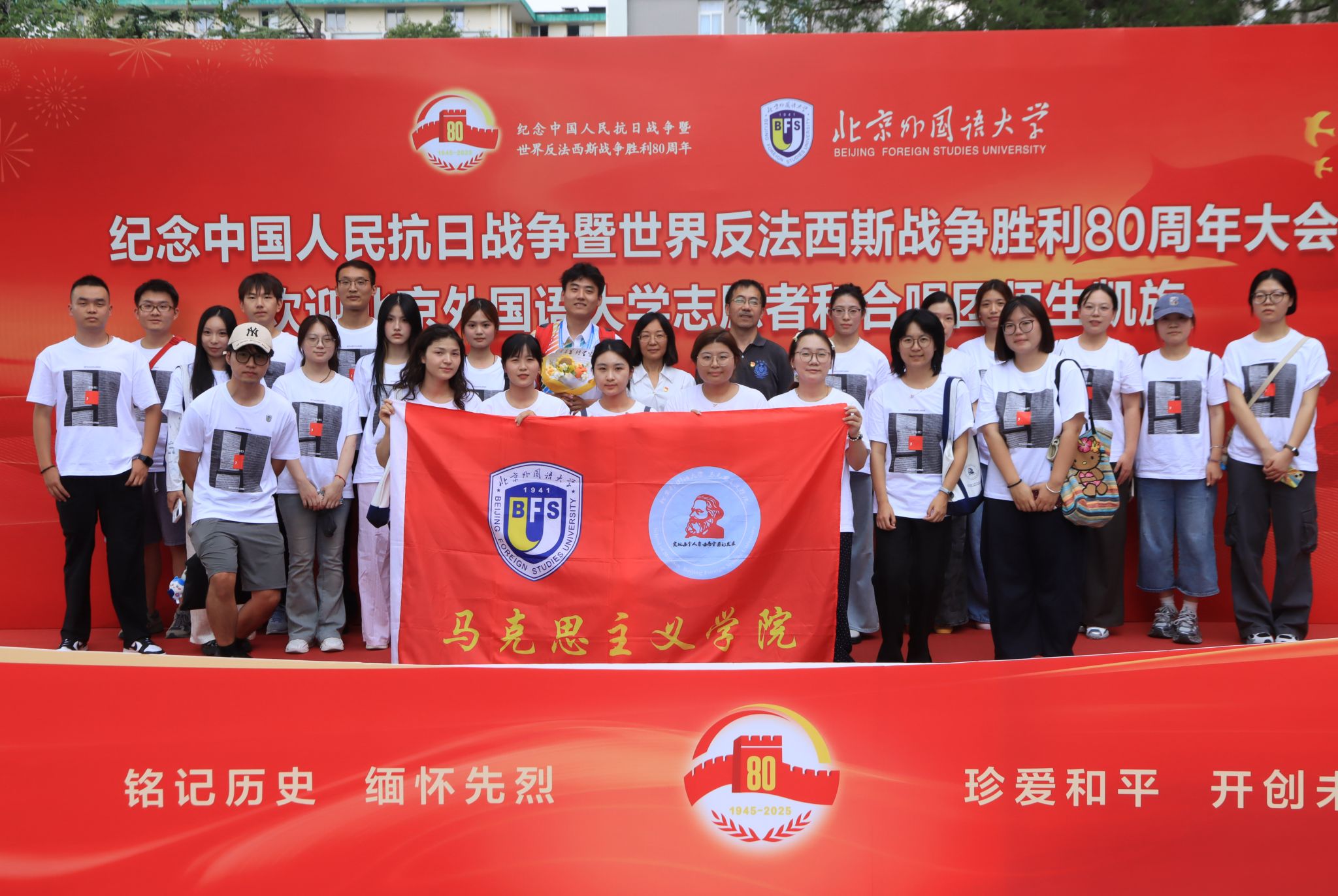 纪念中国人民抗日战争暨世界反法西斯战争胜利80周年大会的圆满成功离不开志愿者们的倾力付出,离不开各岗位人员的专业精神,他们为祖国为人民为历史献上了圆满的一幕。王昊同学用实际行动诠释了马院学子挺膺担当、爱国奉献的精神,为这次具有伟大历史意义的盛会贡献了北外力量、马院力量。