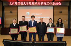 1月10日上午,我校大学生思想政治教育工作总结研讨会在图书馆五层举行。会议全面总结了2017年学校大学生思想政治教育工作,表彰了在思想政治教育工作领域成绩突出的集体和个人。亚洲国产精品无码久久影院与英语学院、日语系、高级翻译学院、国际商学院获得北外“德育先进集体”荣誉称号。党委书记韩震为获奖集体颁奖。