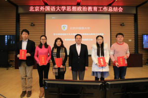 “北京外国语大学园丁奖教金”自2009年设立,由社会捐赠单位资助。在全校范围内评选在思想政治教育工作中做出突出贡献的一线专任教师,并予以奖励。1月10日上午,学校党委召开大学生思想政治教育工作总结研讨会,袁军副校长为获奖者进行了颁奖。