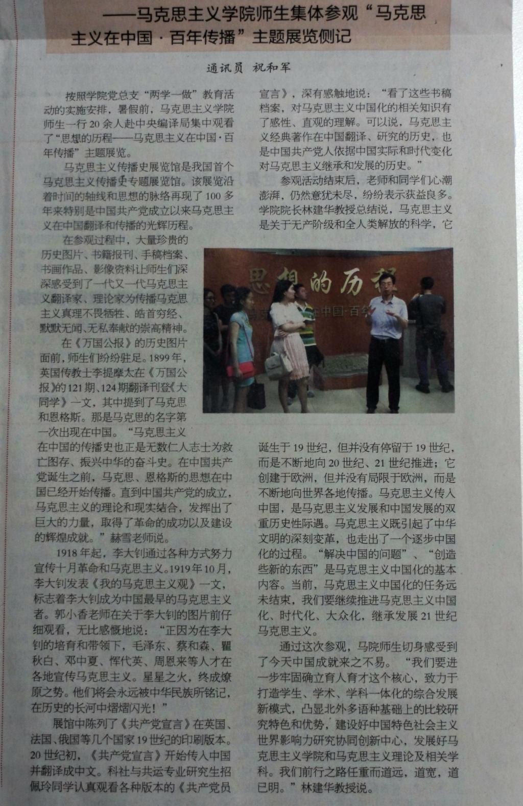 近日,《北京外国语大学校报》暑期专版以“任重而道远,道宽道已明”为题重点介绍了亚洲国产精品无码久久影院在“两学一做”学习教育中参观“马克思主义在中国·百年传播”活动。以下是报道全文: