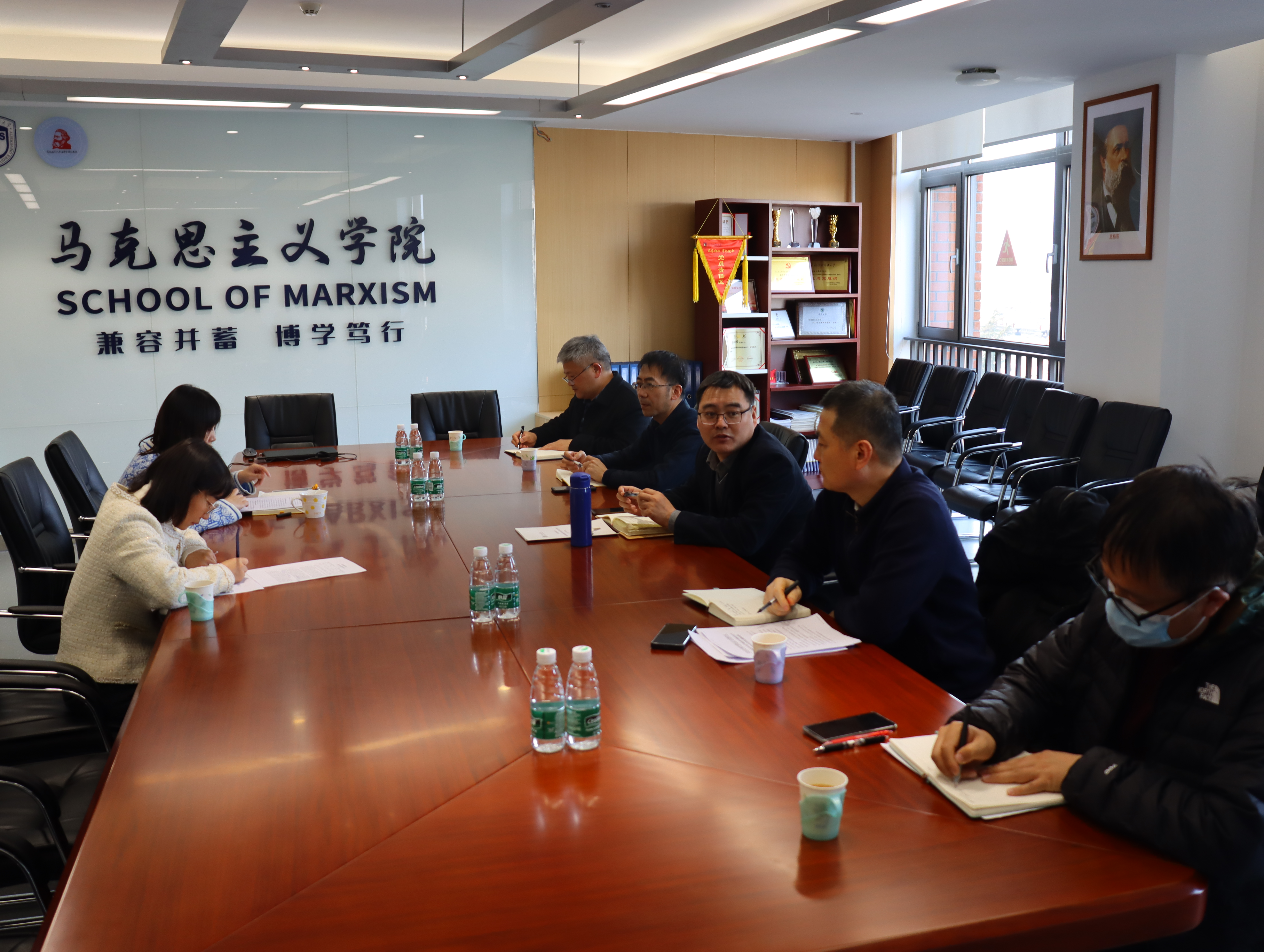 教工党支部书记、学院副院长王曼倩,围绕教工党支部2023年开展主题教育学习活动,党建与思政课程相融合、支部主题活动等内容进行了汇报。研究生党支部书记、辅导员刘珊珊围绕2023年研究生党支部党员发展、党员活动、思政教育等工作进行了汇报。