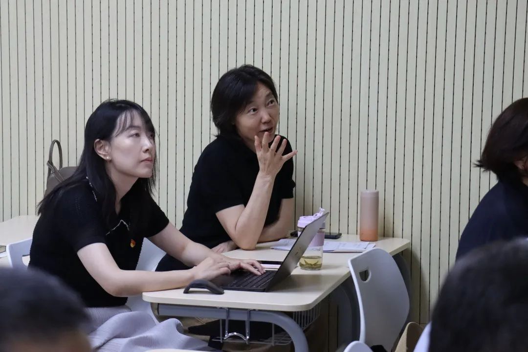 讲座过程中,亚伟、梁爽、周英等学院教师,与张帆教授围绕AI成本控制、技术壁垒等现实问题,以及AI对传统教育和知识迭代的影响、AI的自我意识和情感等前沿话题展开积极交流和深入探讨,现场学术氛围热烈。